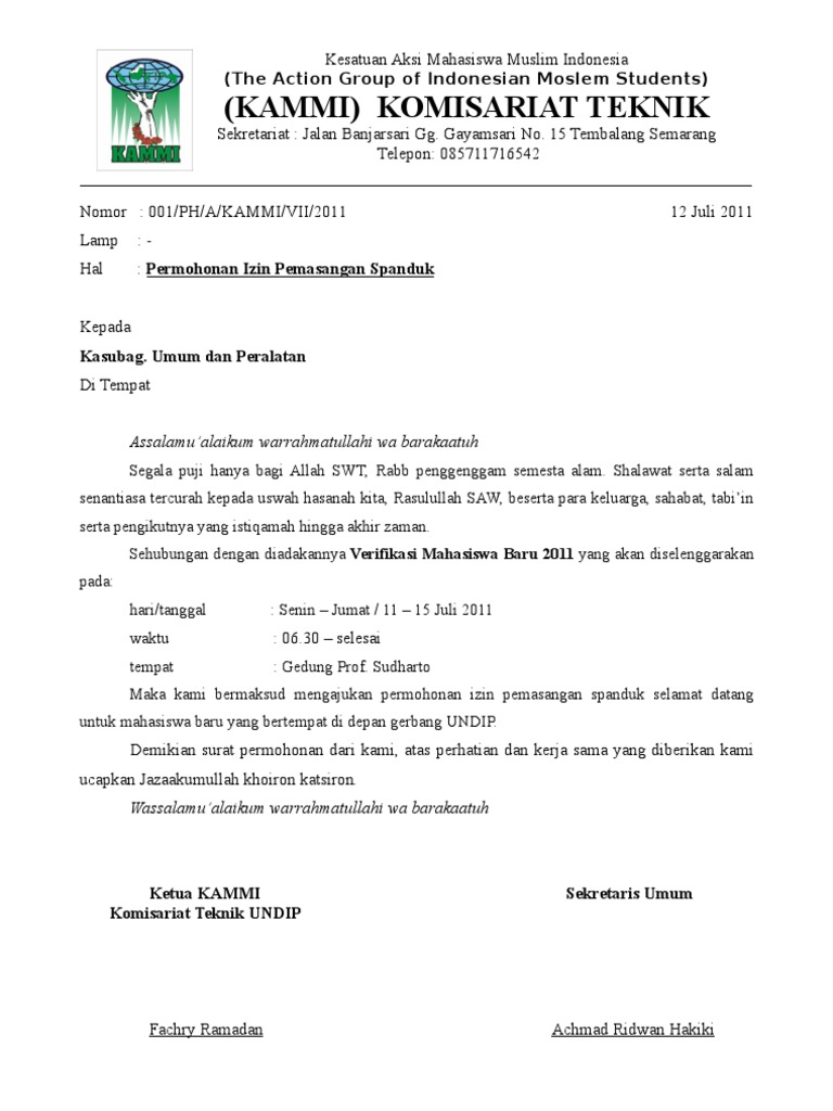 Contoh Surat Permohonan Izin Pemasangan Spanduk Surat Permohonan Desain Contoh Surat P3yeagmy6w